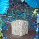 Das Bild einer schönen Mutter aus Perlenmosaik in einem geometrischen Würfel Muster.
