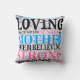 Mutter Word Cloud Kissen, Style 2 ist ein Grafik-Art-Design dekorativer Text Wörter beschreiben Mutter. Alles, was sie Ihnen in verschiedenen dekorativen Schriftart und Farben beschrieben. Die Farben dieses Kissens sind schwarz, rosa und blau auf einem massiven weißen Hintergrund. Worte wie: liebevoll, sanft; stark, immer gläubig; sanft, freundlich; Ehre deine Mutter, Werte und mehr! Das ist zu jeder Jahreszeit ein nettes Geschenk für Mama.