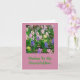Eine Muttertagskarte von Schwiegermutter oder Schwiegermutter zu Tochter oder Schwiegertochter, die sie bei der Erziehung ihres Enkelkindes/ihrer Kinder beglückwünscht. Text ist anpassbar. Foto aus rosa, lila, gelben und violetten Hyazinthen.