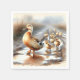 Ein Aquarellbild einer Mutterente führt ihre Enten über einen schlammigen Pfad mit Pfützen in einem Schmutzweg.