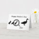 Mama, ich weiß, dass deine Zeit wertvoll ist, und es würde zu lange dauern, bis du meine Gefühle gegenüber dir gelesen hast. Also behielt ich es einfach und sage einfach, ich Liebe dich zum Mond und zurück. Das ist innen geschrieben. Das Cover hat die Worte: Glücklicher Muttertag an der Spitze in kursiv und in der Mitte in der Silhouette Stil ist eine Mutter Ente und ihre drei Enten. Ein Doppelring umkreist eine der Enten mit dem Wort "ich" darunter.