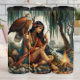 Eine ruhige amerikanische Indianerin mit langen dunklen Haaren, die mit einem aufwändigen Schmuck und einem subtilen Kopfteil geschmückt ist, sitzt reflektiert von einem ruhigen Fluss. Ein majestätischer Glatzenadler sitzt auf einem Ast über ihr. Ein warmes Lagerfeuer glüht in der Nähe, und Weiden hängen anmutig, was eine friedliche und kontemplative Szene in der Natur schafft.