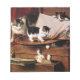 Notepad mit Henriëtte Ronner-Knip Ölmalerei The Mess on the Table (1883). Eine weiße und braune Mutterkatze kümmert sich um ihre Kätzchen, die mit Farbe und anderen Kunstgegenständen auf einem Tisch spielen. Zwei Kätzchen verstecken sich in Schubladen. Ein perfektes Geschenk für Katzenliebhaber und Romantik.
