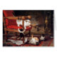 Elegantes, klassisches Kunstgemälde mit schönen Katzen in Schwarz-weißen, gelben Farbtönen mit alten braunen Pergamenteffekten.