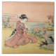 Frauen, die Chrysanthemen an den Ufern eines Baches pflücken. Vintager japanischer Druck von Suzuki Harunobu.