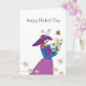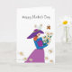 Mädchen in einem hellen lila Kleid und einem großen lila Hut mit Dasien und sie hält ein Strauß von Traumpflanzen für ihre Mutter.