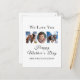 Mit unserer herzlichen Holiday Postcard Collection für den Muttertag, einem ansprechenden Ensemble personalisierter Grüße, das den phantastischen Müttern in Ihrem Leben Liebe und wertvolle Erinnerungen vermitteln soll. Jede Postkarte in dieser Sammlung ist sorgfältig und mit Liebe zum Detail gestaltet und schafft ein wunderschönes Set von Schätzen, die Wärme und herzliche Botschaften tragen. Mit einem einzigartigen Cut-out-Design ermöglicht Ihnen unsere Muttertag Postcard Collection, drei hochgeschätzte Fotos zu präsentieren und Momente zu erfassen, die einen besonderen Platz in Ihrem Herzen einnehmen. Egal, ob es sich um eine aufrichtige Momentaufnahme eines Familienurlaubs oder um eine gepflegte Erinnerung an einen besondere Anlass handelt, jeder Foto-Slot ist sorgfältig konzipiert, um die Schönheit und Bedeutung der Erinnerungen, die Sie gemeinsam geteilt haben, zu unterstreichen. Aber das ist noch nicht alles - unsere Muttertag Postcard Collection enthält auch die Buchstaben "M O M", die elegant auf jeder Postkarte ausgeschnitten sind und dem Design eine Touch von Eleganz und Stil hinzufügen. Diese Briefe dienen als Symbol für die unzerbrechliche Bindung zwischen einer Mutter und ihren Kindern und erinnern die Mama an die Liebe und Verbindung, die Ihre Familie einzigartig machen. Egal, ob Sie nah oder fern sind, unsere Muttertagskarte bietet Ihnen eine herzliche Möglichkeit, Mama zu zeigen, wie viel sie Ihnen bedeutet. Mit jeder Postkarte wird sie die Wärme und Liebe spüren, die sie umgibt, was jede Nachricht noch besonders macht. Feiern Sie stilvoll Mama mit unserer exquisiten Holiday Postcard Collection zum Muttertag.