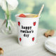 Glücklicher Muttertag mit roten Herzen auf weißem Hintergrund.