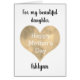 Eine personalisierte Muttertagskarte für die Tochter, die ein goldenes Herz aufweist, das "Muttertag glücklich" heißt. Die Insider-Karte-Nachricht lautet "Ich hoffe, dass heute und jeden Tag mit viel Liebe, Lachen & Spaß gefüllt ist. Alles Gute zum Muttertag!" Die Muttertagsnachricht kann leicht bearbeitet werden. Auf der Rückseite dieser Mutter-Tag-Karte befindet sich das gleiche Herz und das Jahr, das Sie leicht bearbeiten können.