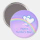 Magnet mit meinem Design eines Regenbogens und zwei weißen und blauen Herzen in einem lila Himmel. Im Text steht: "Glücklicher Muttertag!"