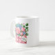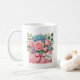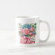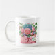 Diese klassische weiße Kaffeetasse wird mit einem reizenden floralen Muttertagsbouquet-Druck gezeigt.