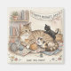 Diese charmante Illustration fängt die Wärme eines gemütlichen Zuhauses mit einer süßen Muttertabbykatze und ihrem Wurf spielerischer Kätzchen ein. Dieses Design enthält reiche Details wie eine Patchworkdecke, einen Korb voller Garn und rustikale Holzregale gefüllt mit Büchern und Topfpflanzen.