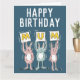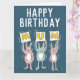 Geburtstagskarte für Mama mit Kaninchen. Spaß Geburtstagskarte mit Darstellung der Kaninchen in Rosa und Blau. Die Kaninchen halten Karten hoch, um das Wort Mama zu buchstabieren.