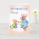 Eine lustige Muttertagskarte für Ihre Mutter mit einer kleinen Maus, die eine Schürze trägt und ihrer Mutter einen Käsekuchen zum Muttertag gibt. Die Mäuse sind handbemalt mit Aquarellstiften und der Gruß auf der Vorderseite lautet: "HAPPY MOTHER'S DAY, Mommy!" Die Insider-Nachricht ist nur ein Vorschlag und Sie können sie einfach bearbeiten oder löschen, wenn Sie möchten.