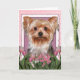 Muttertag - Pink Tulips - Yorkshire Terrier Karte