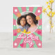 Schicken Sie Ihrer schönen Mama ein paar groovöse gute Lieben und Schwänze mit dieser 70er inspirierten Muttertagskarte! Das Design zeichnet sich durch eine Vintage rosa und grüne Sternexplosion aus. Orangefarbene Blume schmücken den weißen Rahmen und Sie können Ihr eigenes Foto hochladen. Weiße Vektorsterne und rosa Lieben umgeben den Rahmen des Fotos und schmücken die Karte. Der weiße Retro-Schriftart "Beste Mama je" mit rosa Unterlage. Das Karteninnere wird leer verlassen, damit Sie Ihre Nachricht schreiben können, oder Sie können mit dem Designwerkzeug Text/Bilder hinzufügen. Das auf dem Produkt angezeigte Foto dient nur zur Veranschaulichung und ist nicht mit der Karte zu erwerben. Bitte lade dein eigenes Foto hoch.
