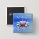 Button mit meinem rosa und blauen Digitalbild einer rosa Wasserlilie auf dem Wasser. Im Text steht "Muttertag glücklich sein".