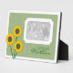 Muttertag Sonnenblumen Plakette ist eine Souvenirplakette mit drei wunderschönen gelben Sonnenblumen mit grünen Stielen vor einem hellgrünen Hintergrund, umgeben von Weiß und einem gerahmten Foto. Die Gedenktafel ist dieser wichtigen Person im Leben eines jeden gewidmet, Mutter; daher ist sie ein perfektes Geschenk für den Muttertag. © Morning 6