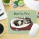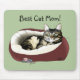 Tabby Cat liegt in ihrem Bett und schaut auf ihre Mama in dem Wissen, dass sie die beste Katzenkatze Mama haben. Alles Gute zum Muttertag von der Katze!