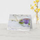 lila Paniktee-Becher auf weißem Fell mit altmodischer Brille auf Büchern und gerissener Kante für Muttertag