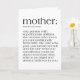 Überraschen Sie Ihre Mutter diesen Muttertag mit dieser einzigartigen und aussagekräftigen Grußkarte. Die Vorderseite dieser Karte zeigt die Definition einer Mutter in fett und trendig Schriftart. Im Inneren der Karte befindet sich eine Nachricht, die anpassbar ist. Klicken Sie einfach auf "Diese Vorlage personalisieren", um die Texte zu ändern. Für weitere Mother's Day-Kartendesigns oder Geschenkideen, Karo in der Sammlung oder besuchen Sie den Laden.