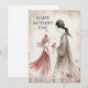 Eine wärmende Aquarellbilder, die einen zarten Moment zwischen Mutter und Tochter darstellen. Die Tochter trägt ein fließendes rotes Kleid und ein passendes Headband und bietet liebevoll ihrer Mutter, die in einem anmutigen grauen Kleid gekleidet ist, einen kleinen Strauß roter Blume an. Umgeben von sanften Blumenelementen und einem traumhaften pastellfarbenen Hintergrund, vereint dieses Kunstwerk wunderbar den Geist der Liebe, der Dankbarkeit und der Freuden des Muttertags