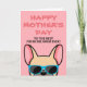Franzosen, was besser, um Ihrer Mama zu zeigen, wie sehr Sie sie diesen Muttertag mit einer personalisierten Karte nur von Ihnen Liebe! Das Design zeigt eine Cartoon-Art-Abbildung eines hellbraunen französischen Bulldoggen mit blauer Sonnenbrille mit der Aufschrift "Happy Mother's Day to the best Frenchie Mama ever!", die auf der Vorderseite steht. Die Innenseite der Karte lautet "Zur Mama, ich Liebe Sie mehr als Leckereien", aber kann geändert werden, um den Wortlaut Ihrer Wahl. Verschiedene französische Bulldoggen-Versionen sind ebenfalls erhältlich.