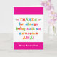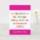Sie nennen Ihre Mutter Amá, nicht Mama. (Amá bedeutet Mutter auf Spanisch.) Stellen Sie sich vor, wie aufgeregt Amá sein wird, eine Muttertagskarte zu erhalten, die speziell an sie adressiert ist! Ihr amá wird auch die Liebe dieses lustigen, farbenfrohen Text-basierte Design, dass "Danke für immer so eine phantastisch Amá! Alles Gute zum Muttertag!" Machen Sie diese Karte anpassbar! Klicken Sie auf "Design bearbeiten", "Unten/Rechts: Text & Bilder", "Text" und "Text hinzufügen", um Ihre eigene, personalisierte Nachricht an Amá inside zu schreiben!