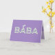Muttertagskarte für Bába. Sie nennen Ihre Großmutter Bába, nicht Oma. (Bába bedeutet Großmutter auf Bulgarisch.) Stellen Sie sich vor, wie aufgeregt Bába sein wird, eine Muttertagskarte zu erhalten, die speziell an sie adressiert ist! Ihr Bába wird auch das wunderschöne Blumendesign dieser Karte Liebe, in dem auf der Vorderseite "Bába" in kleinen weißen Blume mit lila Hintergrund steht und "Muttertag!" in kleinen, weißen Blume im Inneren geschrieben steht. Machen Sie diese Karte anpassbar! Klicken Sie auf "Design bearbeiten", "Unten/Rechts: Text & Bilder", "Text" und "Text hinzufügen", um Ihre eigene, personalisierte Nachricht nach Bába zu schreiben!