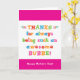 Sie nennen Ihre Großmutter Bubbe, nicht Oma. (Bubbe bedeutet Großmutter auf Jiddisch.) Stellen Sie sich vor, wie aufgeregt Bubbe sein wird, eine Muttertagskarte zu erhalten, die speziell an sie adressiert ist! Ihre Blase wird auch die Liebe dieser Karte lustigen, farbenfrohen Text-basierte Design, dass sagt "Danke für immer ein so phantastischer Bubbe! Alles Gute zum Muttertag!" Machen Sie diese Karte anpassbar! Klicken Sie auf "Design bearbeiten", "Unten/Rechts: Text & Bilder", "Text" und "Text hinzufügen", um Ihre eigene, personalisierte Nachricht zu schreiben, damit Sie Bubbe drinnen schreiben können!