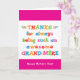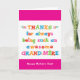 Sie nennen Ihre Großmutter Grand-Mère, nicht Oma. (Grand-Mère bedeutet Großmutter auf Französisch.) Stellen Sie sich vor, wie aufgeregt Grand-Mère sein wird, eine Muttertagskarte zu erhalten, die speziell an sie adressiert ist! Ihr Grand-Mère wird auch das lustige, farbenfrohe, textbasierte Design dieser Karte Liebe geben, in dem steht: "Danke, dass Sie immer so ein phantastisches Grand-Mère waren. Alles Gute zum Muttertag!" Machen Sie diese Karte anpassbar! Klicken Sie auf "Design bearbeiten", "Unten/Rechts: Text & Bilder", "Text" und "Text hinzufügen", um Ihre eigene personalisierte Nachricht an Grand Mère zu schreiben!