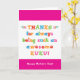 Sie nennen Ihre Großmutter Kuku, nicht Oma. (Kuku bedeutet Großmutter auf Hawaiisch.) Stellen Sie sich vor, wie aufgeregt Kuku sein wird, eine Muttertagskarte zu erhalten, die speziell an sie adressiert ist! Ihr kuku wird auch die Liebe dieser Karte lustige, bunte Text-basierte Design, dass "Danke für immer ein so phantastisch Kuku! Alles Gute zum Muttertag!" Machen Sie diese Karte anpassbar! Klicken Sie auf "Design bearbeiten", "Unten/Rechts: Text & Bilder", "Text" und "Text hinzufügen", um Ihre eigene, personalisierte Nachricht an Kuku drinnen zu schreiben!