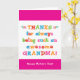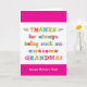 Oma wird das lustige, farbenfrohe, textbasierte Design dieser Muttertagskarte Liebe geben, das sagt: "Danke, dass du immer so ein phantastisches Oma gewesen bist! Alles Gute zum Muttertag!" Machen Sie diese Karte anpassbar! Klicken Sie auf "Design bearbeiten", "Unten/Rechts: Text & Bilder", "Text" und "Text hinzufügen", um Ihre eigene, personalisierte Nachricht in Oma zu schreiben!