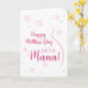 Muttertagskarte schwanger Mana. Diese Muttertagskarte ist perfekt für den erwartenden Mana in deinem Leben. (Mana bedeutet Mutter auf Griechisch.) Das zukünftige Mana wird das niedliche Blumendesign dieser Karte mit einer minimalistischen Linie Liebe, die den Bauch und die rosa Blume einer Schwangerschaft zeichne. Es sagt: "Glücklicher Muttertag zum bald kommenden Mana! Diese Muttertagskarte wird ein Hit mit jeder schwangeren Mutter sein, deren Baby sie Mana nennen wird. Machen Sie diese Karte anpassbar! Klicken Sie auf "Design bearbeiten", "Unten/Rechts: Text & Bilder", "Text" und "Text hinzufügen", um Ihre eigene, personalisierte Nachricht an Mana inside zu schreiben!