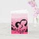 Rosa Muttertagskarte mit Silhouette einer Mutter und Tochter. Die Karte hat eine Silhouette von Blume unten.