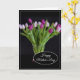 Diese Muttertagskarte wird mit einem hübschen lila Tulips-Foto gezeigt. Die Karte hat eine spezielle Meldung im Inneren. Passen Sie diese Karte an oder kaufen Sie, wie es ist. Börsenbild pixabay.com