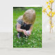 Kleines Mädchen, das ein Gänseeier mit der Tagesnachricht von Mama hält.
