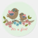 Suchen Sie niedliche Aufkleber wegen der Geburt Ihres Babys? Vielleicht ist das das, was du gerne kaufst. Es ist eine Vektorgrafik, die einen Muttervogel und ihr Baby auf einem Zweig mit Blume zeigt, Der Text: Ït ist ein Mädchen" ist ein Template Objekt und kann leicht in jeden anderen Text geändert werden.