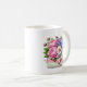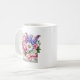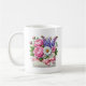 Diese klassische weiße Kaffeetasse wird mit einem reizenden floralen Muttertagsbouquet-Druck gezeigt.