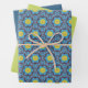 MVB Retro Blue-Muster mit gelber Blume Geschenkpapier Set