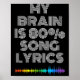 My Brain Is 80% Song Lyrics Funny Music Lover Poster