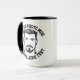 My Face on a Large custom Combo Mug, 15 oz., 3.4" diameter x 4.5" high, with COLLEGE text font. (A combo mug has black, hunter green, maroon, navy blue or yellow handle + inside). Custom photo and personalized text template with two individually customized design areas (see store for more background colors, font styles, and alternative template options).