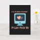 This charming card features a retro computer screen in soft light blue, centered against a deep black background. On the screen, two glowing hearts appear side by side—one bright coral and one gentle gray—suggesting a special connection. Above the screen, bold coral lettering reads, “OF ALL THE WEIRDOS ON THE INTERNET,” adding humor and honesty. Below, the message continues with “I’M GLAD I PICKED YOU,” delivering warmth and affection. The contrast between the dark background and pastel colors makes the screen and hearts glow with character. The nostalgic computer design paired with modern humor creates a thoughtful celebration of finding love in unexpected places, making this card a sweet and meaningful choice for Valentine’s Day. ❤️