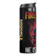 This is a powerful, emotional graphic celebrating a firefighter son. A detailed image of a firefighter in full mask and gear is centered against a backdrop of swirling red and yellow flames. The bold text at the top reads "HE IS NOT JUST A FIREFIGHTER", and the bottom text finishes the proud declaration: "HE IS MY SON". The name "Theodore" is featured vertically on the side, personalizing this tribute from a proud parent.