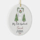 Celebrate the excitement of your very first apartment with this charming hand-drawn ornament featuring a festive front door, Christmas trees, and garlands in soft watercolor style. Personalize it with your name, address, and year to capture the joy of this new beginning. The minimalist design with elegant handwritten text makes it a perfect keepsake or thoughtful gift for anyone moving into their first home or apartment. A timeless reminder of independence, warmth, and holiday cheer that will hang beautifully on your Christmas tree for years to come.