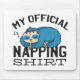 Cute and funny design featuring a lazy sleeping Sloth sleeping and the quote "My official napping shirt". Good for the young and the old.