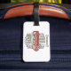 make your suitcase stand out at the airport with these classic car luggage tags featuring a vibrant red vintage graphic. the bold my garage my rules design ensures your bags are easy to identify while showcasing your passion for automotive culture wherever you travel. these durable travel accessories are perfect for car enthusiasts and mechanics heading to distant car shows or vacations.