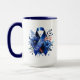 Blaues Sensibilisierungsband mit Blume. Bewusstsein und Unterstützung für Myalgische Enzephalomyelitis.