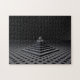 Eine geheimnisvolle Treppenpyramide in einer nächtlichen Umgebung mit entfernten Sternen.