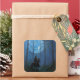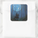 Mysteriöser Schwarzer Ritter im Mondlichtwald Quadratischer Aufkleber
